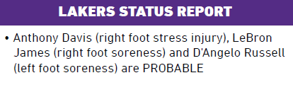 湖人官宣附加赛伤情:詹眉拉塞尔大概率出战 有望明天晋级季后赛