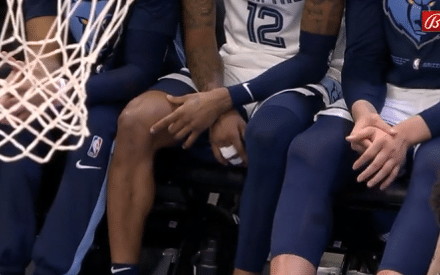 第一节中段,莫兰特在一次扑防中撑到右手,随后离场返回更衣室。来到第二节中段,莫兰特回到替补席。但从现场记者拍摄的照片来看,莫兰特右手中指无名指被包在了一起。随后,莫兰特也回到比赛中,似乎并没有太大的问题。但这一幕也非常惊魂,目前不知道这次伤势对于莫兰特接下来的比赛会有什么影响。