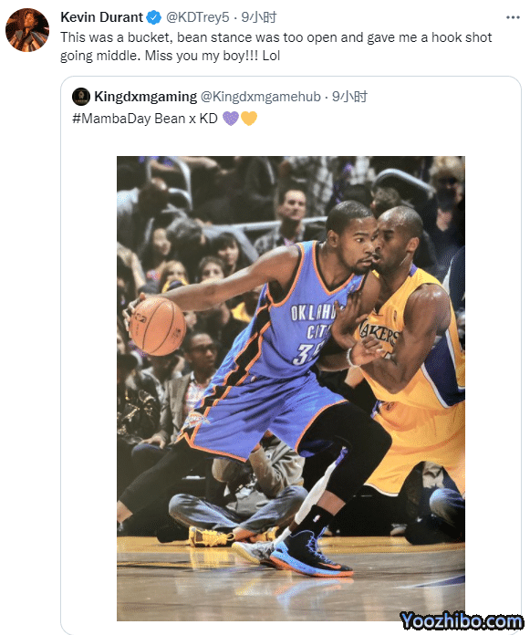 今日杜兰特发推怀念科比,在科比日(当地时间8月24日)转发昔日背身单打科比的赛场照,配文写道:这球我投进了,科比给了我一个中距离勾手的机会,我把握住了那球。想你了科比!