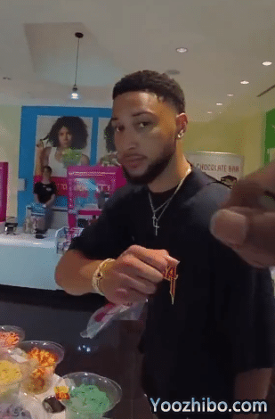 西蒙斯前往商店买东西,却被一球迷称为威少,而且被嘲讽不会投篮;该球迷离开商店时一直“挑衅”西蒙斯,本西站在原地并且把购物篮放在地上,说了一些话回应该球迷,美美的心情被搞得乱七八糟,似乎都不想购物了。