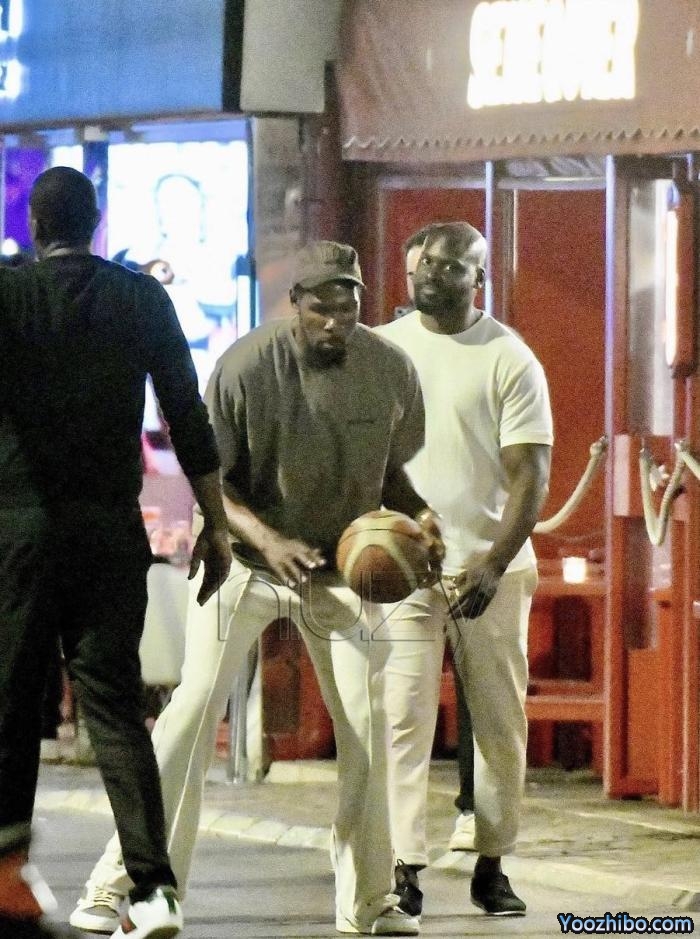 杜兰特身穿深色T恤和米白色运动裤搭配一双板鞋,戴着棒球帽与好友一起现身法国街头,期间杜兰特与友人相谈甚欢,满脸笑容十分开心;值得一提的是,杜兰特一行众人漫步,他们偶遇一位“蜜桃臀”美女,等他们走远了,她仍站在后面看。
