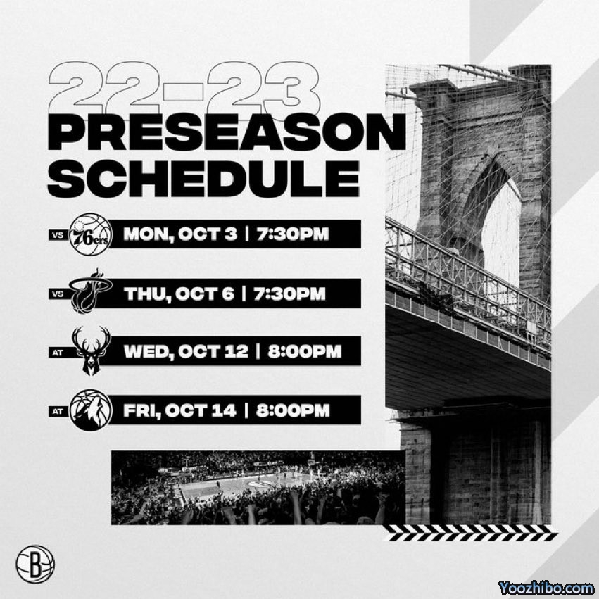 2022-23赛季NBA季前赛篮网队赛程一览