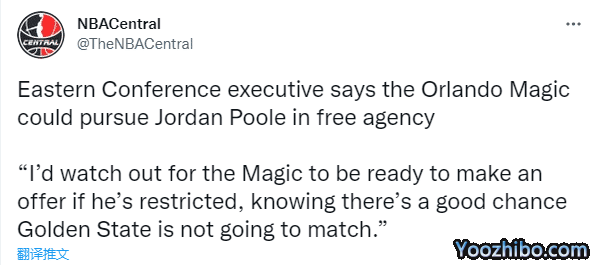 一名NBA东部高管推测,魔术明夏可能引援普尔,他表示:如果普尔变成受限制自由球员,我会留意魔术是否会准备好报价,因为我知道勇士队很有可能匹配不上他们的报价;他们会用班凯罗的传球在前场建立一些东西,但他们也需要一个顶级的外线得分手。如果你把普尔、班凯罗和瓦格纳放在一起,这将是一支令人兴奋的年轻球队