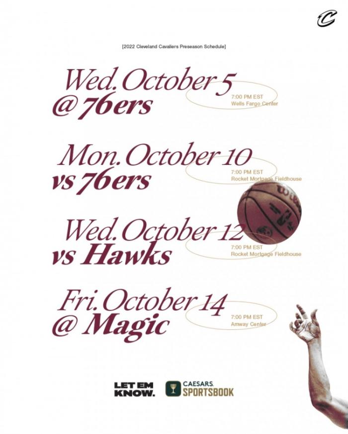 骑士官方晒出了球队新赛季季前赛的赛程,具体如下: