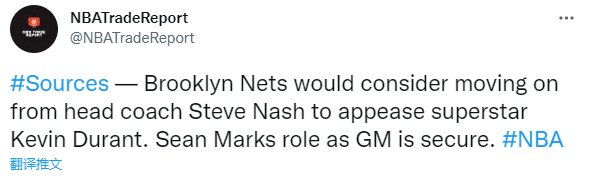 据报道,篮网考虑解雇纳什从而安抚超级巨星杜兰特,肖恩-马克斯的总经理位置是安全的。