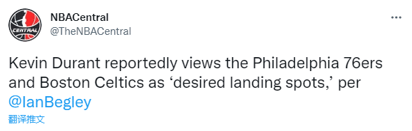 记者Ian Begley还表示,若76人想交易得到杜兰特,则必须要在交易中加入马克西,76人管理层强烈希望与篮网进行杜兰特的交易。