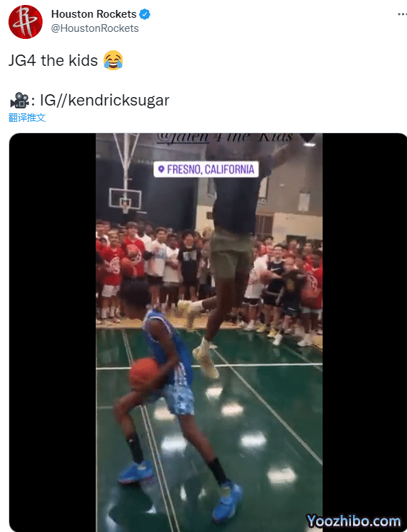 火箭榜眼被晃飞引热议,美媒疯狂转发以及调侃,甚至有球迷调侃这也能打NBA吗?火箭官推晒视频并且发文写道:杰伦-格林是为了孩子们。
