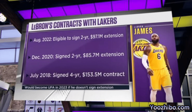 若詹姆斯和湖人签约,这将是他与湖人签下的第三份合同。2018年7月,他和湖人签下4年1.535亿美元的合同,2020年12月,他又和湖人签约2年8570万美元。