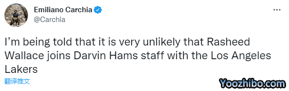 据美记Emiliano Carchia报道,拉希德-华莱士不太可能加入湖人哈姆的教练组;此前Shams曾报道,拉希德-华莱士是湖人助教的候选之一,不过双方一直没有达成正式合同。