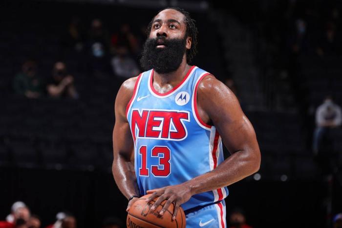 在没有杜兰特、欧文的20场比赛中,哈登独自带队取得了17胜3负的好成绩。并率领篮网以东部第二的好成绩打进了季后赛。因为长时间超负荷使用以及年龄的增长,哈登在对阵火箭的比赛中,出现了腿筋拉伤的情况。这次意外的受伤,也让哈登的职业生涯轨迹发生了改变。