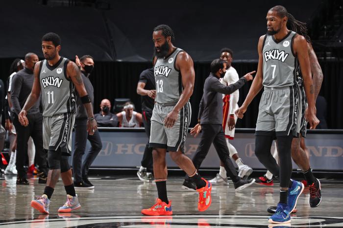 哈登来到篮网,因为身边有了杜兰特、欧文这种进攻大BUG,所以哈登自然就把自己定义为一名组织大核心。为了能赢总冠军,哈登心甘情愿地牺牲了自己的得分。但随着常规赛后期杜兰特的小伤大养,欧文以各种奇葩理由打打停停。哈登均场出场37.9分钟(全联盟出场最多的球员)成了球队的劳模。哈登降低身价来篮网是来夺冠的,没想到不是每一只鸟儿都向往天空的。