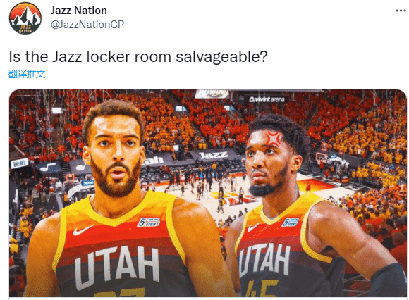 爵士自媒体Jazz Nation转发了名记Tim MacMahon的文章并写道:爵士队的更衣室还能挽救吗?