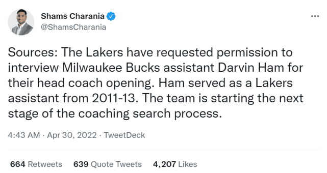 湖人选帅最新进展!申请面试雄鹿冠军助教 对爵士主教练也感兴趣