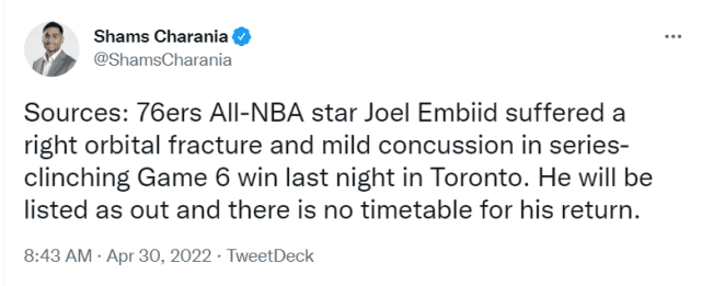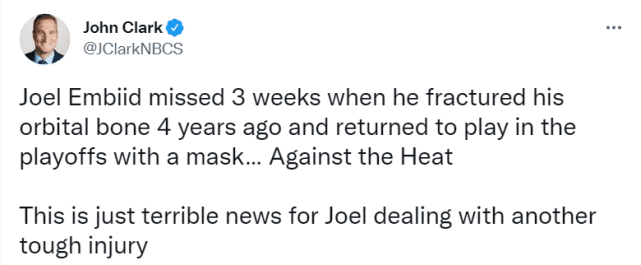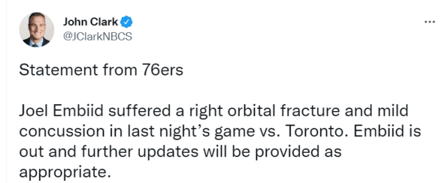 官宣!恩比德眼眶骨折+轻微脑震荡 名记:复出没时间表