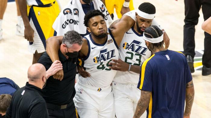 米切尔左腿筋受伤!爵士球星自曝只是腿筋紧张,明天复查希望出战G6