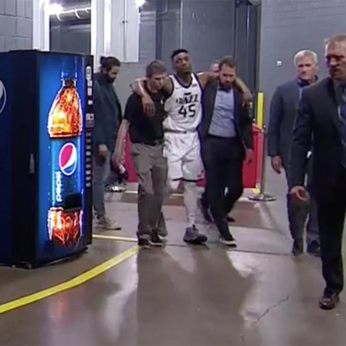 末节米切尔在一次突破上篮落地时遭遇伤病,捂着大腿十分痛苦;4分41秒米切尔受伤下场,捂着大腿一瘸一拐直接离场,并且返回更衣室接受检查;爵士官方已经公布初步伤情,米切尔左腿筋受伤,将在明天回到盐湖城后进行进一步的检查。