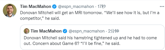 赛后米切尔本人表示他的腿筋紧张,还表示自己应该会参加G6生死战,明天进行核磁检查,还直言:我是一名竞争者。