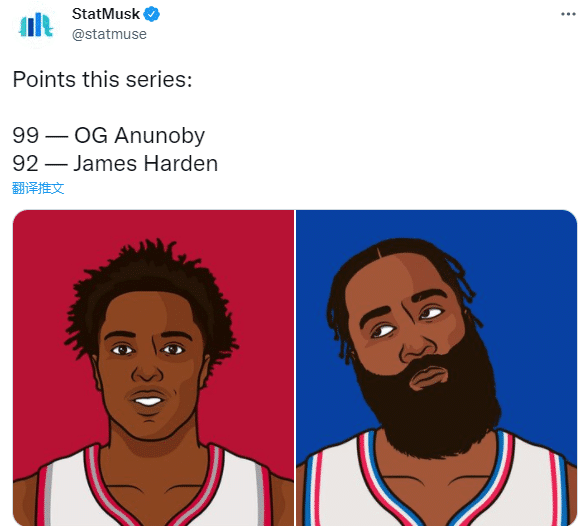 系列赛至今,哈登5场比赛总共拿到92分,得分不如阿奴诺比(99分)。