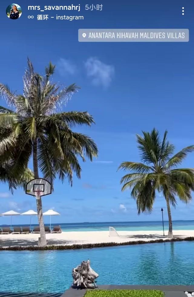 詹姆斯离开了迪拜,前往度假的下一站:马尔代夫。他和詹嫂入住了马尔代夫克哈瓦岛安纳塔拉别墅度假酒店,在这里享受悠闲的度假时光。