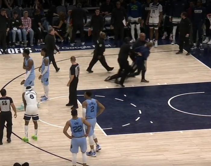 来源:360直播04-25 10:49360直播04月25日讯 ,NBA季后赛森林狼主场再次大战灰熊,第三节场上又发生球迷闯进球场的事件,比赛被迫暂停,闹事的女球迷被拖走并且赶出球馆。