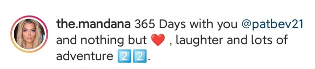 Mandana在社媒上配文写道:“@贝弗利,和你在一起的365天,满满都是爱、欢笑与奇遇。22(贝弗利的森林狼球衣号)。”