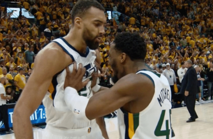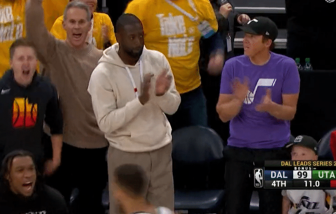 米切尔持球反击,戈贝尔掩护后迅速拆到篮下,米切尔送出传球,戈贝尔空接暴扣,100-99!爵士准绝杀。米切尔和戈贝尔非常兴奋,撞胸庆祝!而爵士主场球迷更是沸腾了,所有球迷压抑已久的情绪,在这一刻通过怒吼全部发泄了出来。小老板韦德则是在场边淡定鼓掌,祝贺球队。