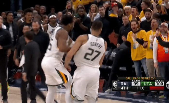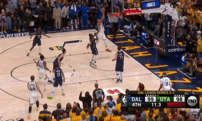 此时,比赛胜利的天平似乎已经完全倾向于独行侠,他们看到了3-1拿到赛点的希望。而且在气势上,独行侠压倒了主场爵士的球员和球迷。然而随后,米切尔突破自投自抢还造成犯规,2+1打成。随后,独行侠鲍威尔制造犯规,得到两罚机会。诡异的一幕出现了,鲍威尔两罚不中!