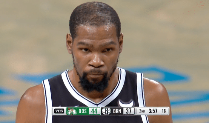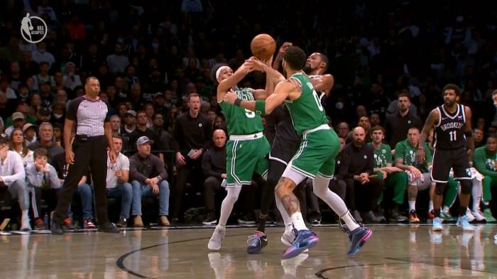 第一节,杜兰特依旧被绿军盯防和包夹,无奈之下只能传球,7分56秒杜兰特迎着布朗轰进三分,篮网12-5开局,之后被绿军打出10-2攻势;两队僵持对打,杜兰特单打格威高难度后仰得分;很明显,杜兰特很难获得出手机会,一拿球就被疯狂包夹。