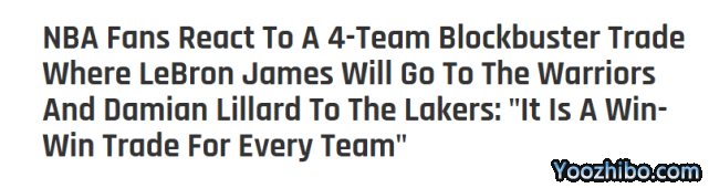 美媒晒4队大交易方案!詹皇联手库里 利拉德加盟湖人威少去开拓者