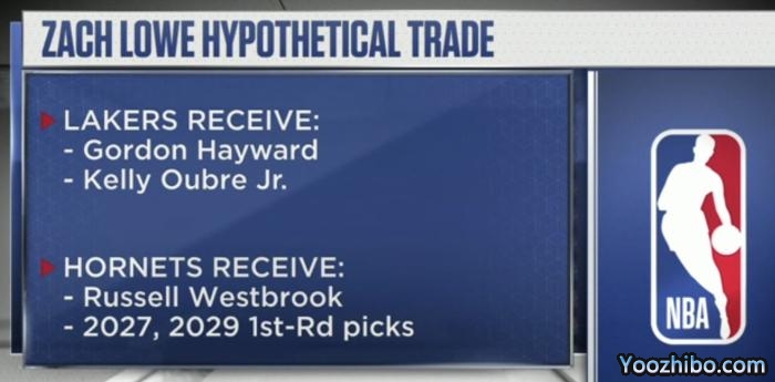 Zach Lowe建议湖人搭上两个首轮选秀权,把威少交易到黄蜂,如此交易的话,海沃德和乌布雷可以驰援詹姆斯和浓眉,下赛季继续冲击总冠军。
