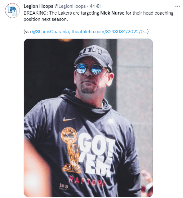 谁会成为湖人下一任主教练?名记shams报道,猛龙冠军教头尼克-纳斯是湖人新帅的主要目标,此前有记者报道,密歇根大学的主教练朱万-霍华德也是湖人潜在主帅之一。