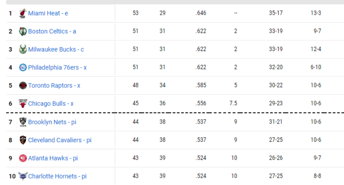 从前10来看,本赛季东部季后赛的交锋看点很多。首先就是篮网落位到底是第7还是第8,这决定着热火和绿军首轮的对手。除了篮网之外,首轮最受关注的对决,可能是费城和猛龙,费城想要击败猛龙晋级,看起来难度极大。