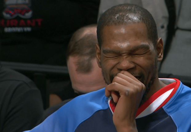 杜兰特眯眼笑被抓拍,20+16+10创三大纪录!