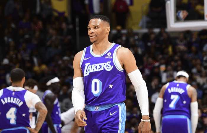 加盟湖人之后,威少在场上的表现很糟糕,经常投出三不沾以及极其离谱的打板投篮,湖人内部一度施压让威少打替补,不过沃格尔坚持让其首发;本赛季,威少总共为湖人出战78场比赛,场均上场34.3分钟拿到18.5分7.4篮板7.1助攻,多次因状态糟糕而被关键时刻弃用。