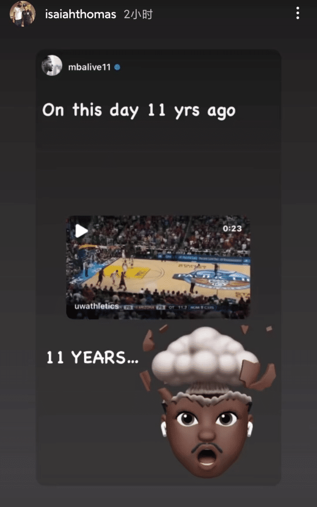 今天对小托马斯来说,还是另一个有纪念意义的日子。他本人在社媒上转发了11年前今天的一幕,在一场华盛顿大学和亚利桑那大学的NCAA比赛中,比赛最后双方战成75平,小托马斯控球到最后撤步跳投,命中压哨绝杀,霸气十足。