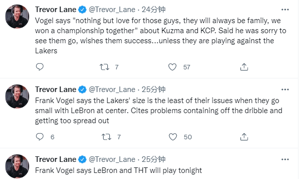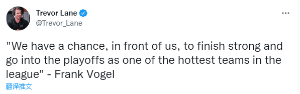 谈到湖人的现状,沃格尔直言:在我们面前仍有机会,去强势终结比赛,以联盟最热门球队之一的身份晋级季后赛。