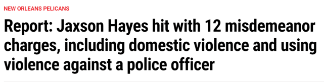 鹈鹕本赛季的糟心事不少,锡安受到伤病困扰,至今仍未上演赛季首秀,而他的同届新秀海耶斯又被指控,可能面临牢狱之灾。