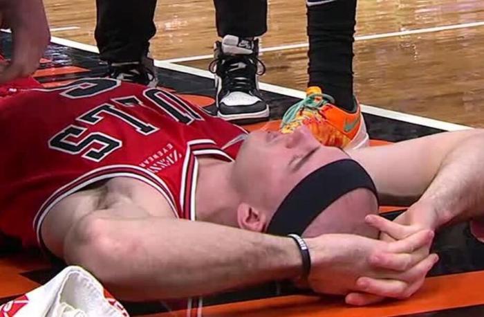 在早前雄鹿对阵公牛的比赛中,雄鹿球员格雷森·阿伦在退防时,双手在空中掀翻了准备上篮的公牛球员卡鲁索。卡鲁索横空倒地,重重摔倒在地板上。随后,阿伦被裁判判罚二级恶意犯规遭到驱逐。而卡鲁索也无法坚持,退出比赛。赛后,卡鲁索被诊断为右手腕骨折,将接受手术至少休战6-8周。