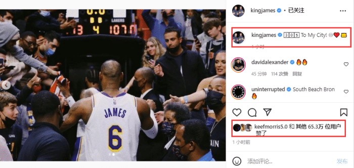 老詹晒照示爱热火引热议,1小时点赞破65万!背后总冠军旗帜抢镜