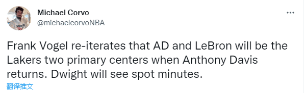 浓眉因伤继续休战,但沃格尔再次重申,浓眉回归后他和詹姆斯将作为中锋位置上的两个主要球员,霍华德也将获得出场时间。