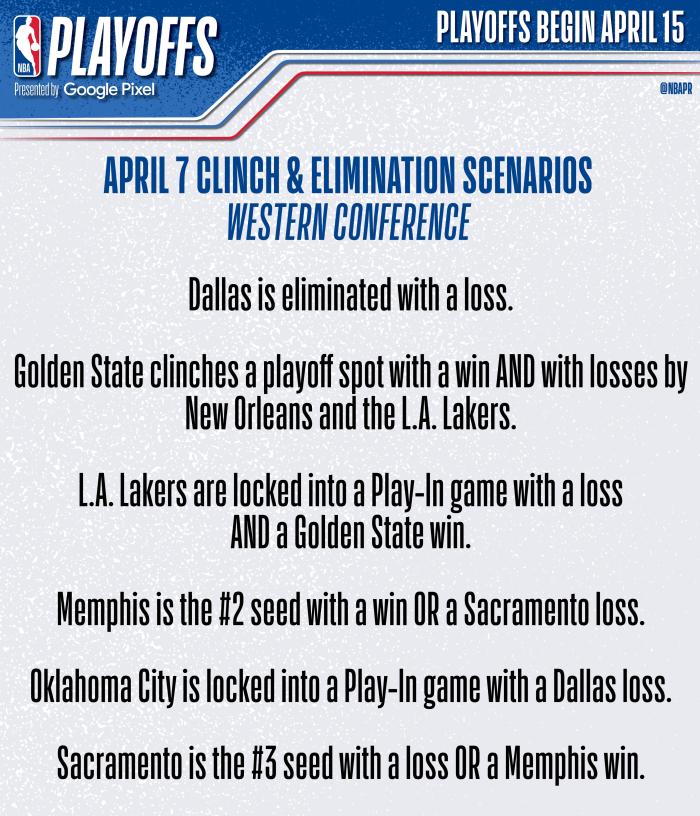 1、若独行侠失利,他们将无缘附加赛和季后赛,雷霆将锁定附加赛。