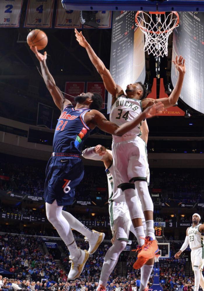生死时刻,哈登后撤步三分打铁不中,恩比德抢到进攻篮板,上篮时惨遭字母哥大帽扇飞,裁判第一时间吹罚字母哥防守干扰球,记分牌比分变成118平;字母哥不判判罚,示意回放,裁判回放之后确定字母哥盖帽有效,76人被扣掉2分,最终雄鹿客场拿下胜利。