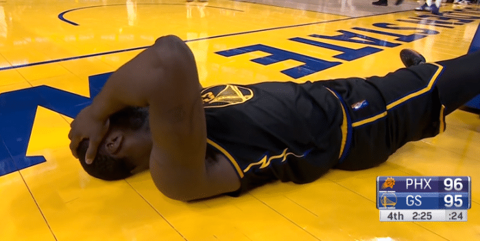 末节勇士和太阳两队的进攻相当,比赛打得十分胶着,关键时刻普尔造犯规两罚全中以及投进三分反超比分,此时普尔疯狂怒吼庆祝;随后保罗和布克带队8-2重新获得领先;生死时刻,布克中投打铁,格林反击2+1摔出底线,汤普森关键球又打铁,保罗关键一击,普尔两罚一中,克劳德两罚全中,普尔连续造犯规,四罚全中反超1分,汤普森致命无球犯规,格林传球失误,普尔中圈三分不中,最终勇士主场惜败太阳。
