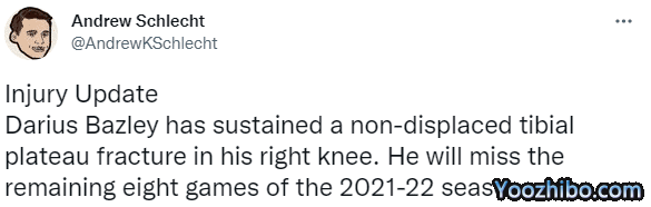 开拓者官宣,努尔基奇(脚部伤病)、安芬尼-西蒙斯(膝盖伤病)和布莱德索(跟腱伤病)因伤赛季报销,他们都因伤缺席至今,都不会出战剩余的比赛;另外开拓者宣布约什-哈特因左膝髌腱伤势将至少再缺席一周,此前名记确认利拉德本赛季不会复出。