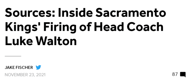 国王这一决定的时机,曾引起NBA圈内人士的质疑。其他球队的高管想知道为什么国王不在休赛期更换主帅,但国王其实在赛季初认为沃顿似乎有机会把国王带回到季后赛,他们开季前9场比赛取得5胜4负的战绩,而且那段时间的赛程被认为是联盟里最艰难的之一。