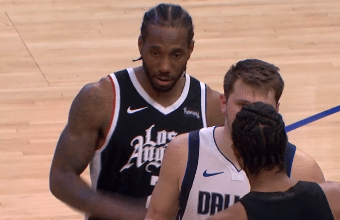 不过乔治和东契奇攀谈的时间实在太久,莱昂纳德一时之间没有找到和东契奇拥抱的机会,因此找了其他独行侠球员握手。这个空档,考辛斯、小莫里斯、曼恩纷纷和东契奇拥抱。最逗的是贝弗利,他伸出自己的手,可是东契奇一直背对着他,直到最后,贝弗利才得到了东契奇握手的机会。