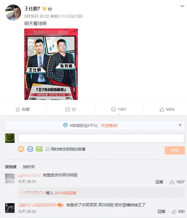 哈登受伤后大笑,王仕鹏登上热搜!微博遭到围攻:你不配做解说