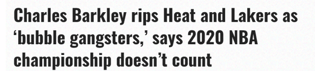 巴克利嘲讽湖人热火:两队都是泡泡匪徒!2020年总冠军不算数
