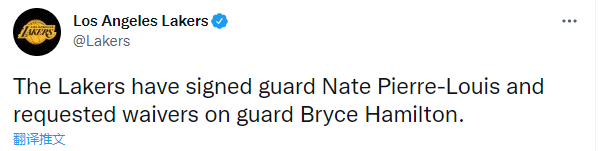 湖人官方正式宣布,球队已签下后卫内特-皮埃尔-路易斯,并且裁掉布莱斯-汉密尔顿(昨天刚签的),合同细节未曝光