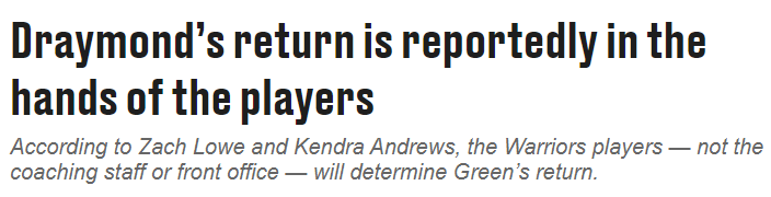 Zach Lowe还表示:我不知道勇士是否会进行投票,是否会成立领导委员会,但我被明确告知,这不会由管理层和教练主导的决定。